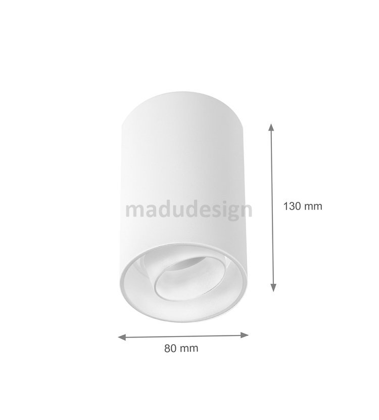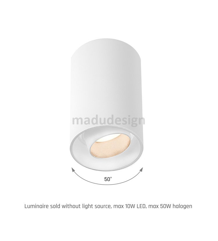LED přisazené svítidlo s krytím IP20. Tvar tubus - válec. Barva bílá. Hliníkové tělo. Špičkové zpracování. Určeno pro žárovky s paticí GU10, napětí 230V. Nastavitelný směr vyzařování.