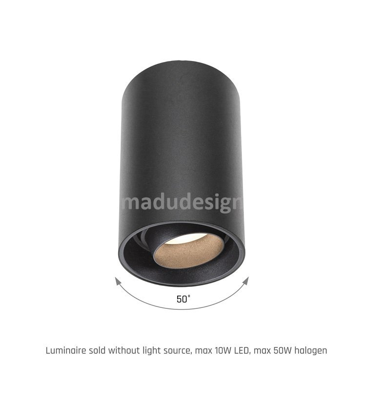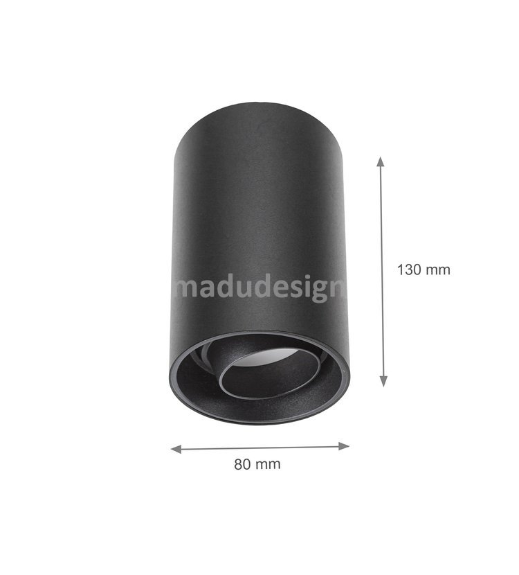 LED přisazené svítidlo s krytím IP20. Tvar tubus - válec. Barva černá a stříbrná. Hliníkové tělo. Špičkové zpracování. Určeno pro žárovky s paticí GU10, napětí 230V. Nastavitelný směr vyzařování.