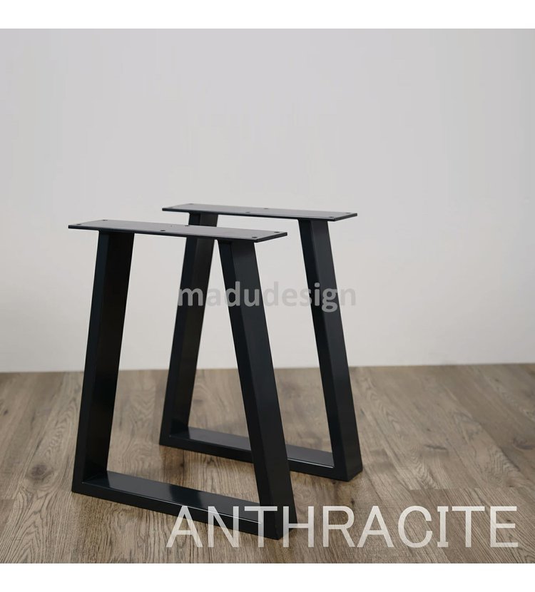 Ručně vyráběné stolové podnoží z oceli, 2 ks. Výška podnože je 71 cm, šířka 65 cm. Ocelový profil 80x20 mm. Tato industriální ocelová podnož/noha ke stolu je vhodná zejména pro jídelní stoly. Moderní design. Barva: černá, antracit, bílá, zlatá, stříbrná, červená, hnědá, surová ocel (bez úpravy), bezbarvý lak lesk, bezbarvý lak mat.