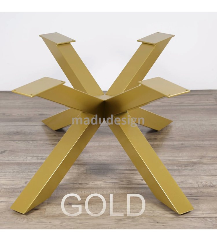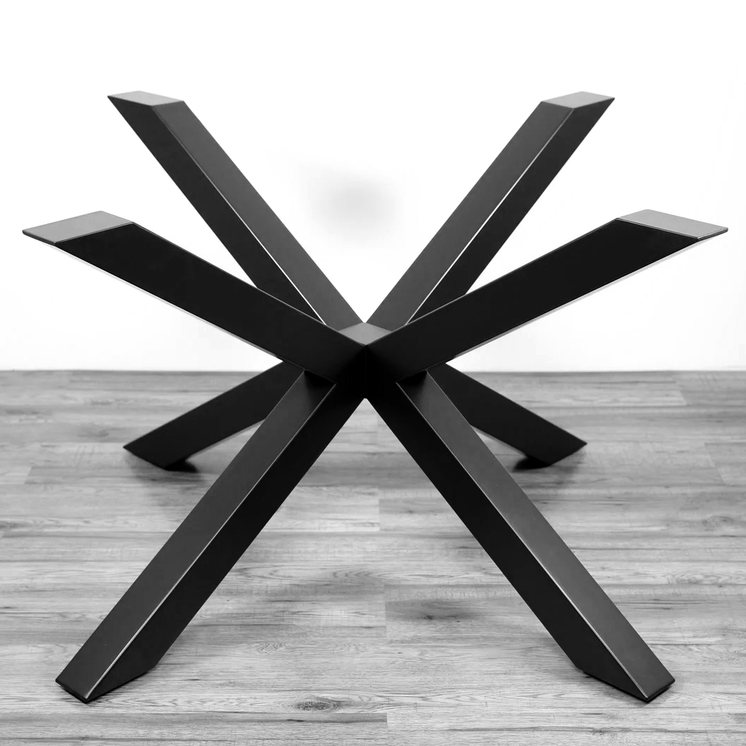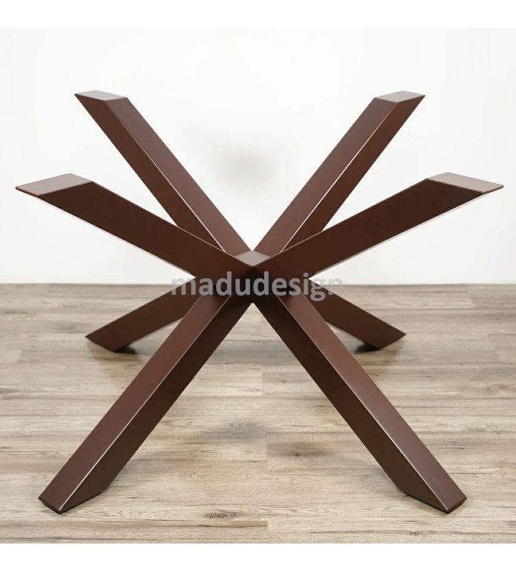Ručně vyráběné stolové podnoží z oceli. Výška podnože je 72 cm, šířka 100 cm. Tato industriální ocelová podnož/noha ke stolu je vhodná zejména pro kruhové jídelní stoly. Moderní spider design. Barva: černá, antracit, bílá, zlatá, stříbrná, červená, hnědá, surová ocel (bez úpravy), bezbarvý lak lesk, bezbarvý lak mat.