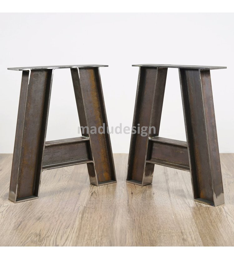 Ručně vyráběné industriální ocelové podnoží konferenčního stolu je jedinečným a stylovým způsobem, jak dát vašemu domácímu prostoru osobitý a poutavý vzhled. Tato "noha ke stolu" je nejen stylová, ale také extrémně funkční. Moderní design ve tvaru písmene A. Výška podnože je 40 cm, šířka 35 cm. Ocelový profil ve tvaru písmene I šířky 80 mm. Cena je za 2 ks nohou.